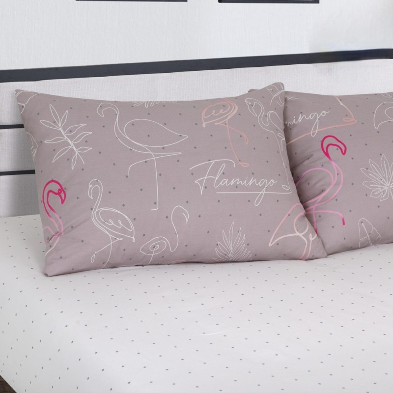 Постельное белье евро поплин (нав. 50х70) Фламинго