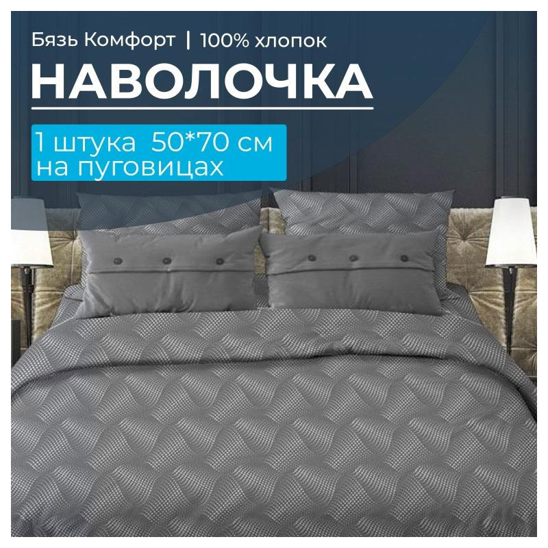 Наволочка 50х70 (1шт) бязь Комфорт на пуговицах Иллюзия серый