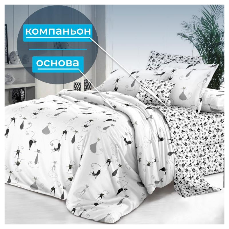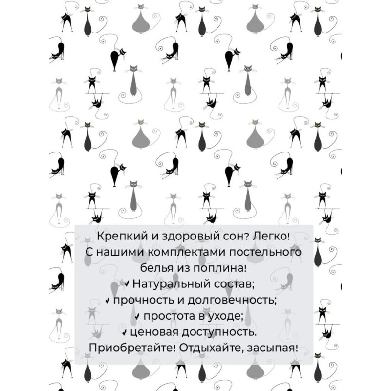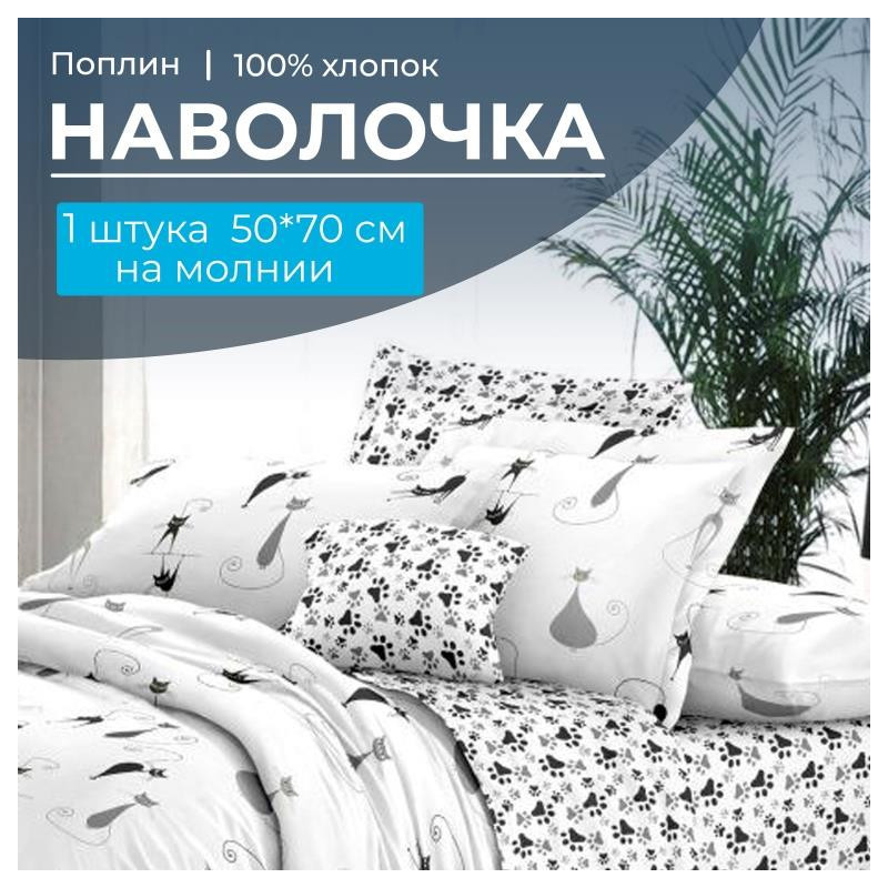 Наволочка 50х70 (1шт) поплин на молнии Кошечка основа