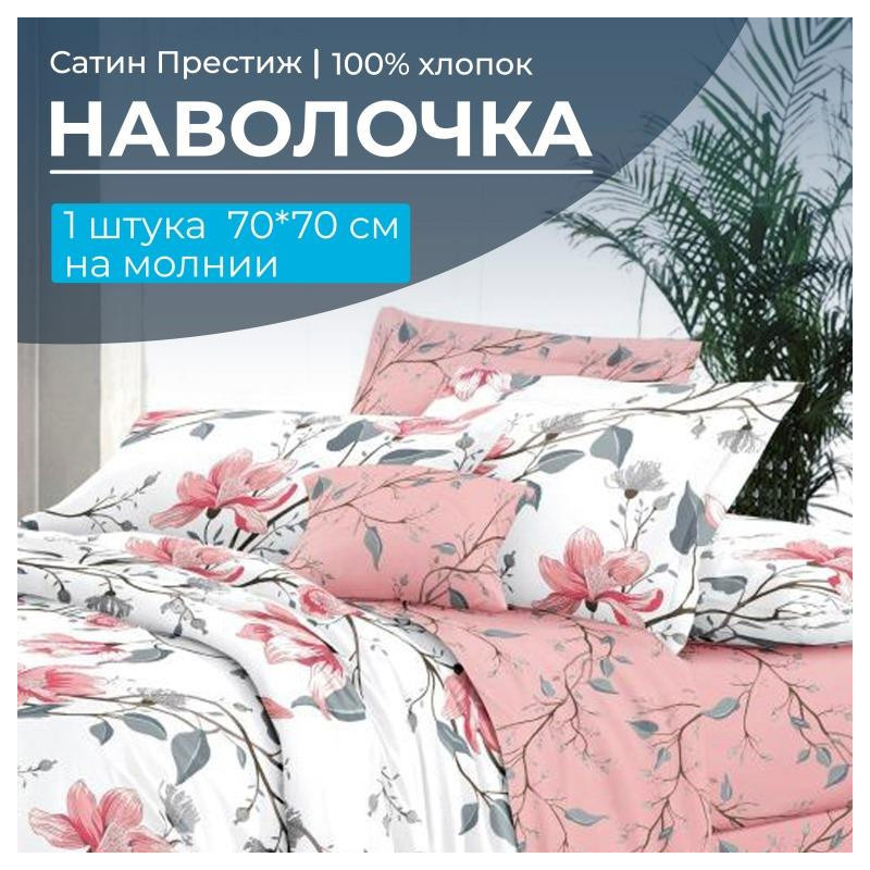 Наволочка 70х70 см (1 шт) на молнии сатин Юлия (компаньон)