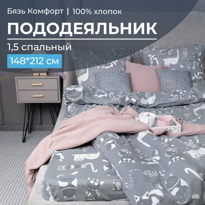 Пододеяльник 148х212 см бязь Комфорт Кошкин дом тёмно-серый
