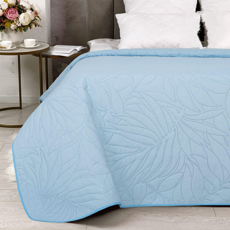 Покрывало (ультрастеп) 220х215 Голубой с кантом