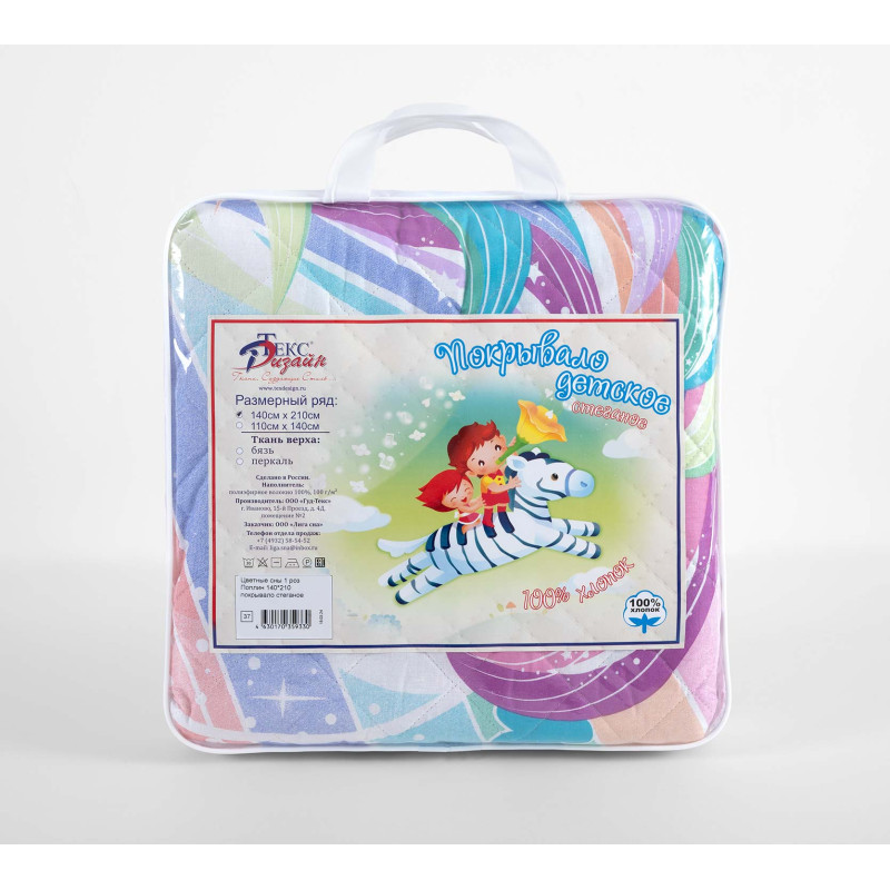 Детское покрывало стеганое 140х210 см перкаль Цветные сны 1