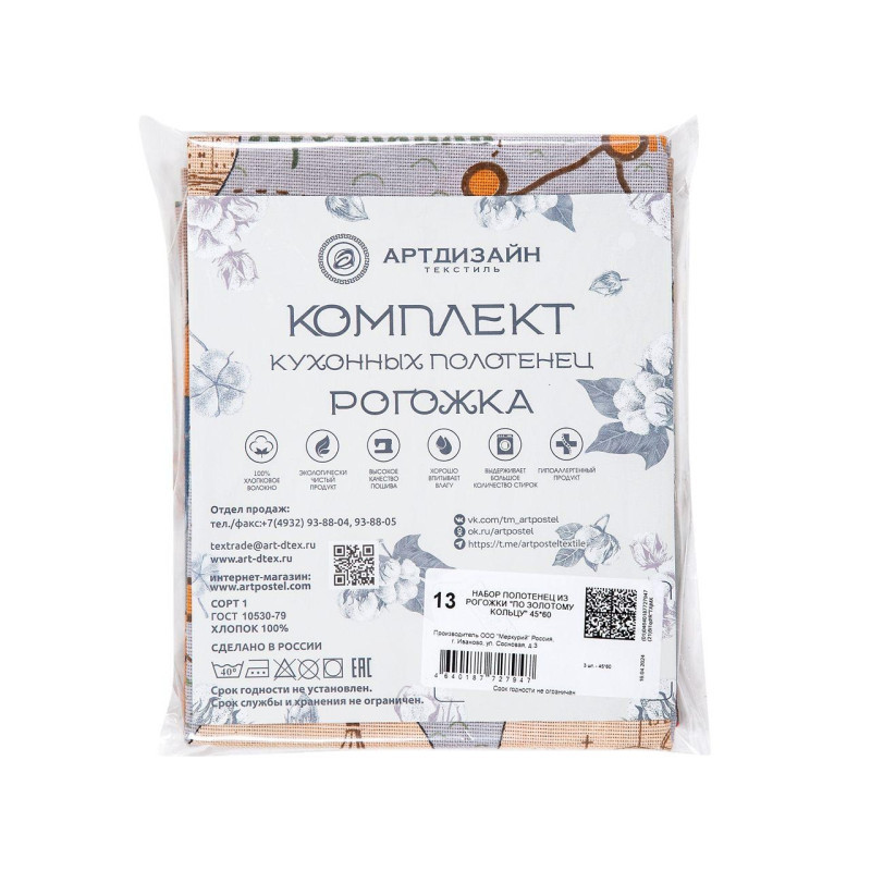 Набор полотенец 45х60 (3 шт) рогожка По золотому кольцу