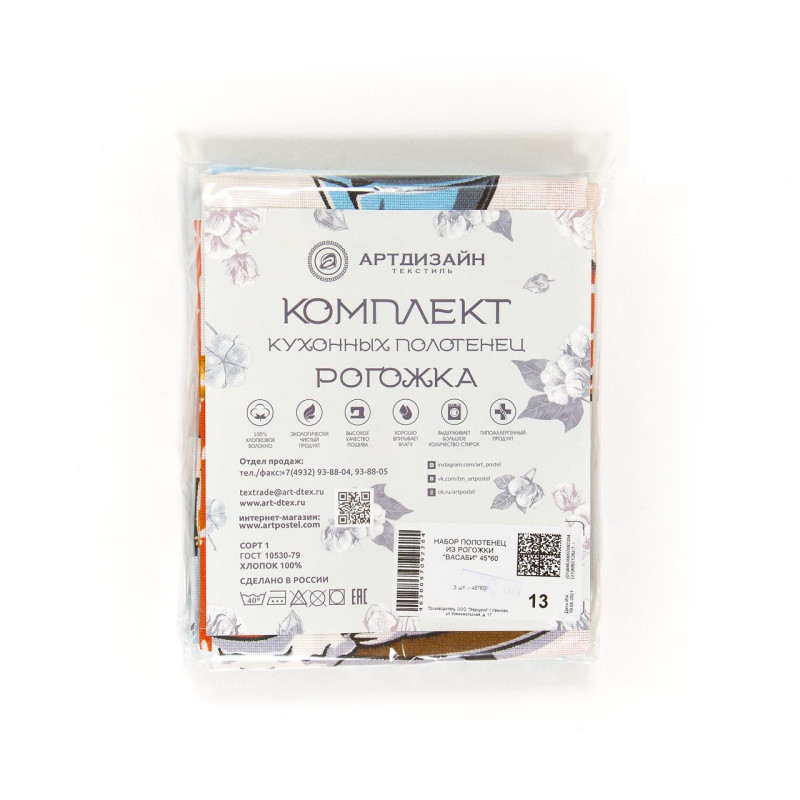 Набор полотенец 45х60 (3 шт) рогожка Васаби