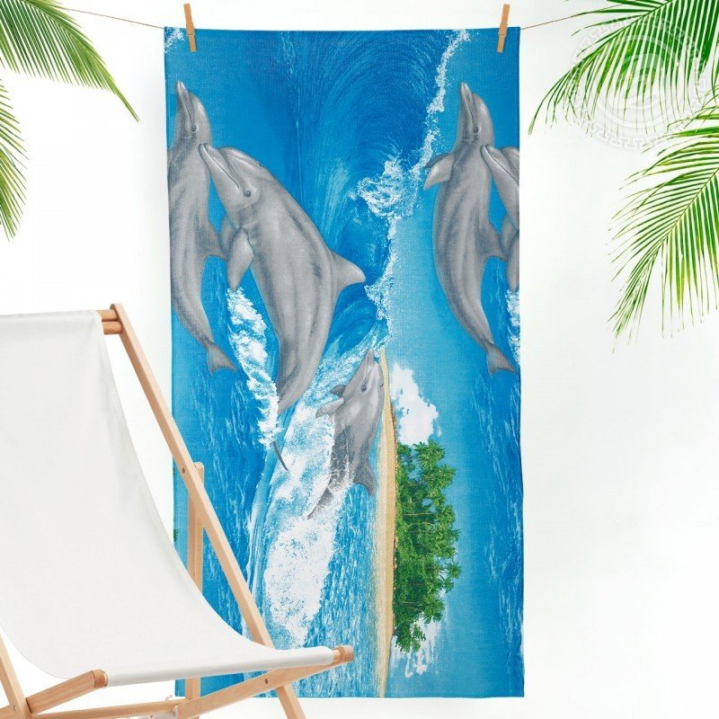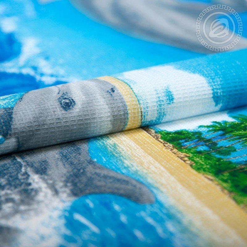 Полотенце 80х150 вафельное Игривые дельфины