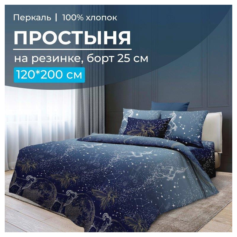 Простыня 120х200 на резинке перкаль Млечный путь (борт 25 см)