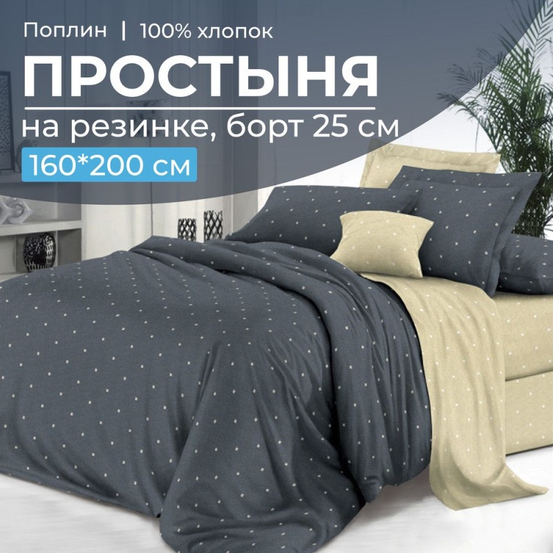 Простыня 160х200 на резинке поплин Мэсот (компаньон) (борт 25 см)