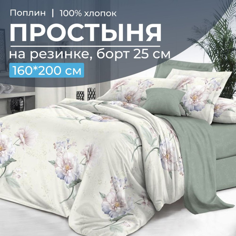 Простыня 160х200 на резинке поплин Шаганэ (компаньон) (борт 25 см)