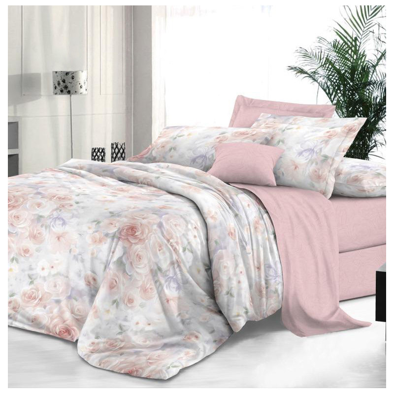 Простынь 200х200 на резинке сатин Романтика (компаньон) (борт 25 см)