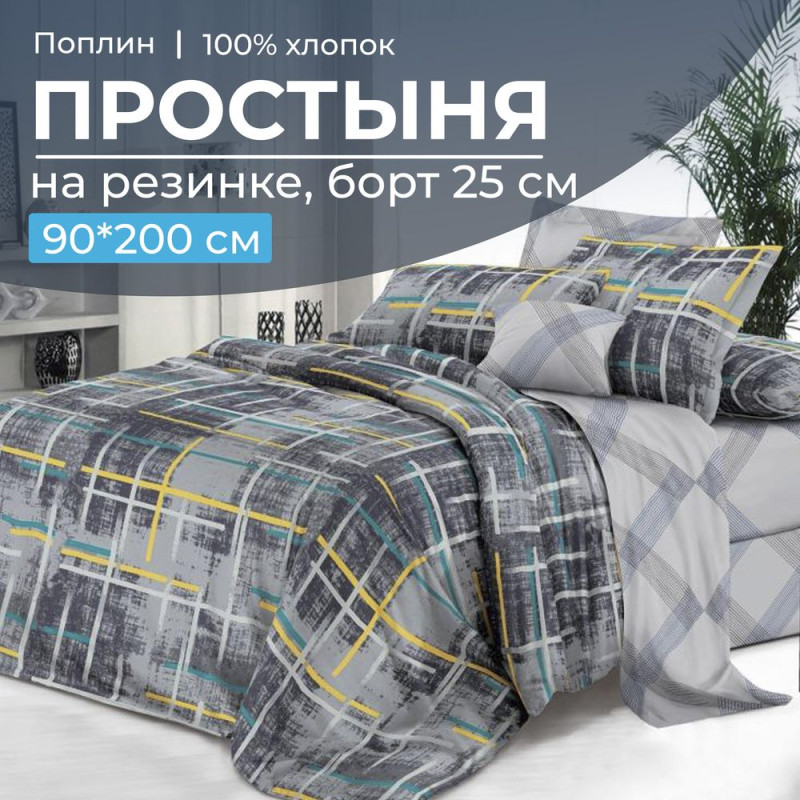 Простыня 90х200 на резинке поплин Руслан (компаньон) (борт 25 см)