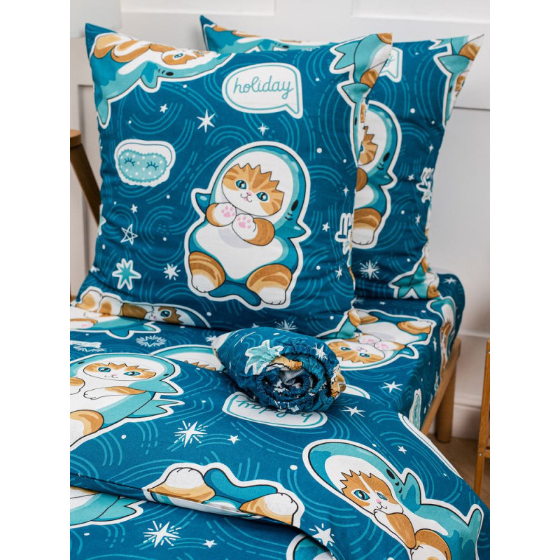 Простынь 90х190 на резинке бязь Комфорт Кот Акула (борт 20 см)