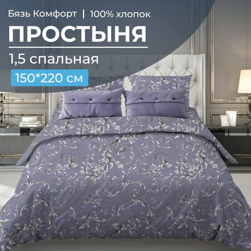 Простынь 1.5 сп. 150х220 см бязь Валенсия сиреневый арт.30064