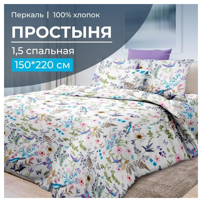 Простынь 1,5 спальная перкаль 150х220 см Каролина