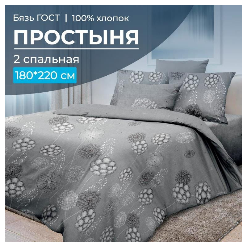 Простынь 2 сп. 180х220 см бязь ГОСТ Данте серый