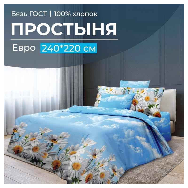 Простынь евро 220х240 см бязь ГОСТ Воздушные ромашки
