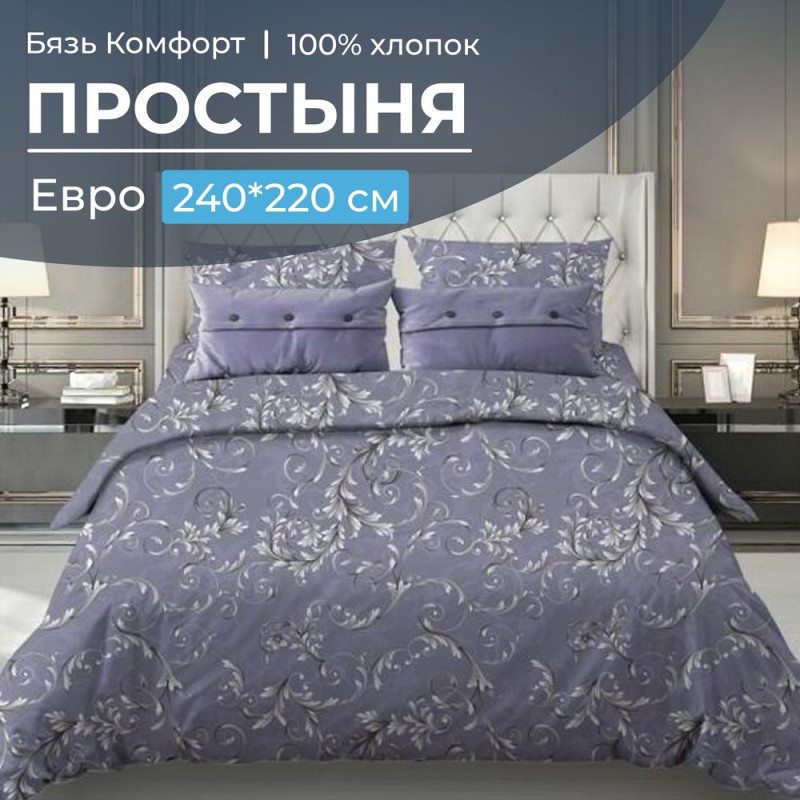 Простынь евро 220х240 см бязь Валенсия сиреневый