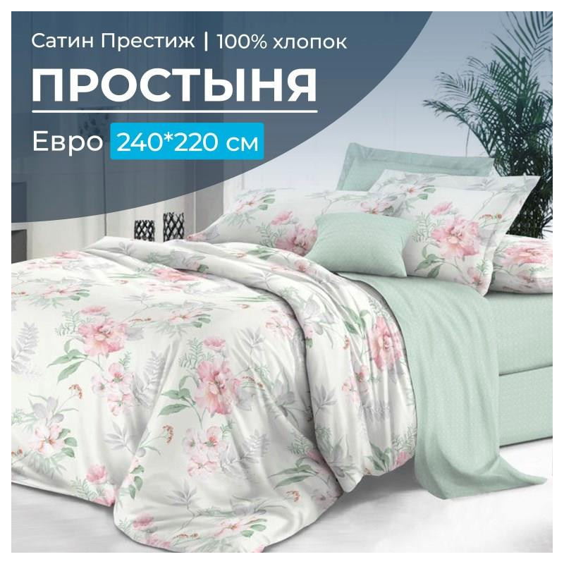 Простынь евро 220х240 см сатин Альбина (компаньон) арт.2108