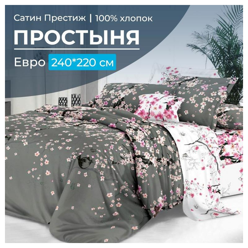 Простынь евро 220х240 см сатин Туманное утро (компаньон) арт.2108