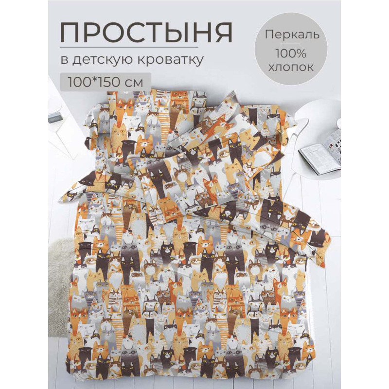 Простынь детская 100х150 см перкаль Котики