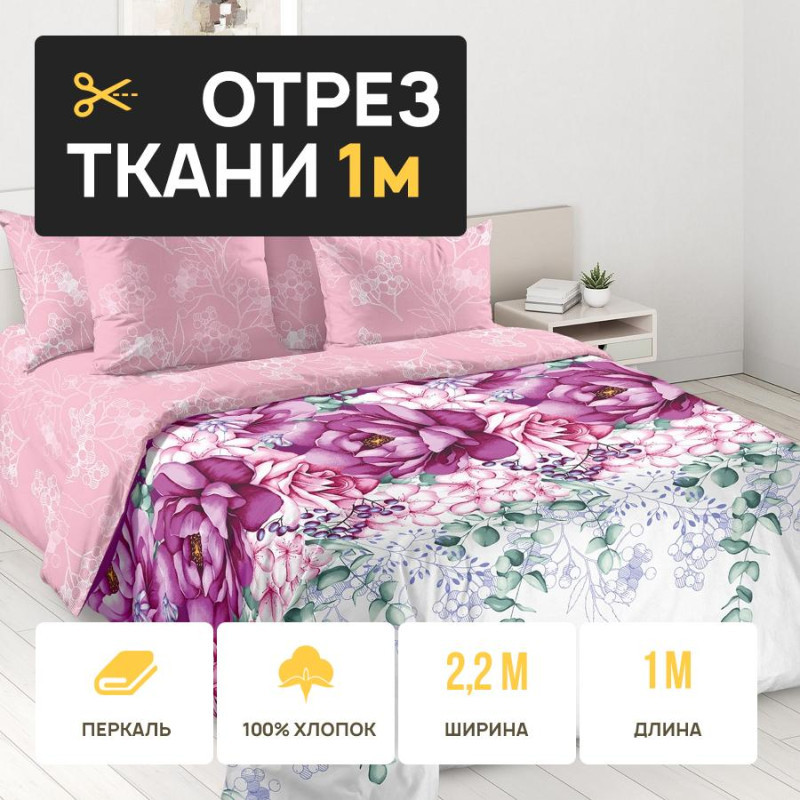 Ткань 1 метр (1 отрез 2,2х1 м) перкаль Цветочный триумф основа