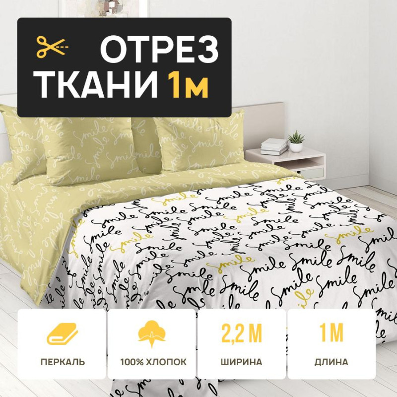 Ткань 1 метр (1 отрез 2,2х1 м) перкаль Улыбнись основа