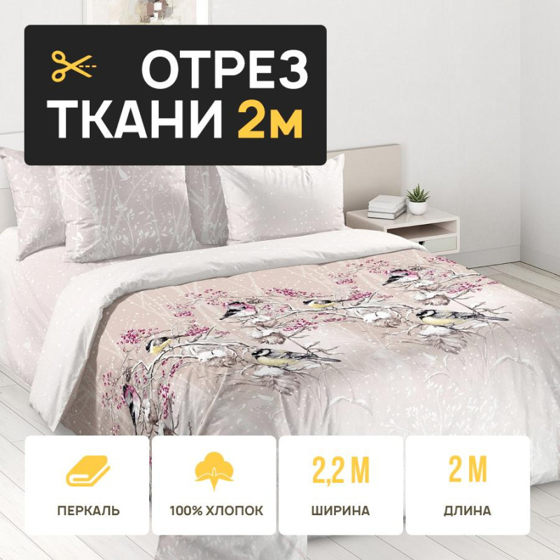 Ткань 2 метра (1 отрез 2,2х2 м) перкаль Зимнее царство основа