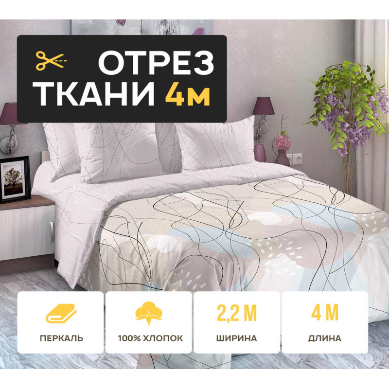 Ткань 4 метра (1 отрез 2,2х4 м) перкаль Абстракция 1 основа