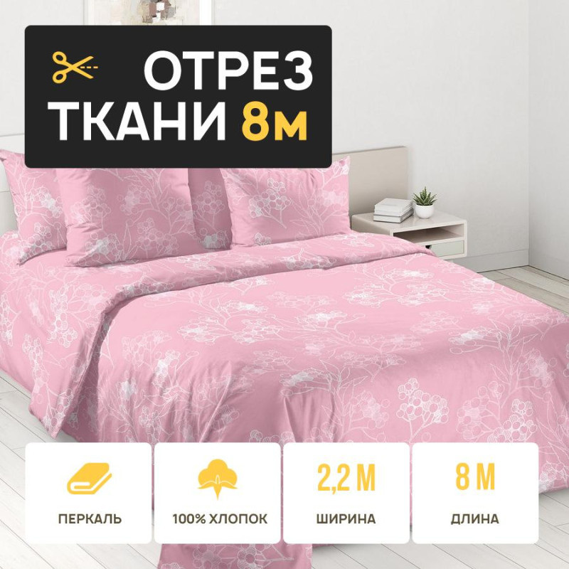 Ткань 8 метров (1 отрез 2,2х8 м) перкаль Цветочный триумф компаньон