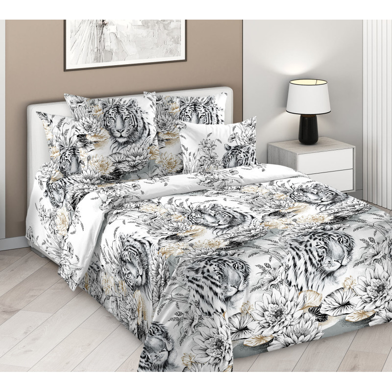 Ткань 8 метров (2 отреза по 2,2х4 м) перкаль основа+компаньон Белый тигр