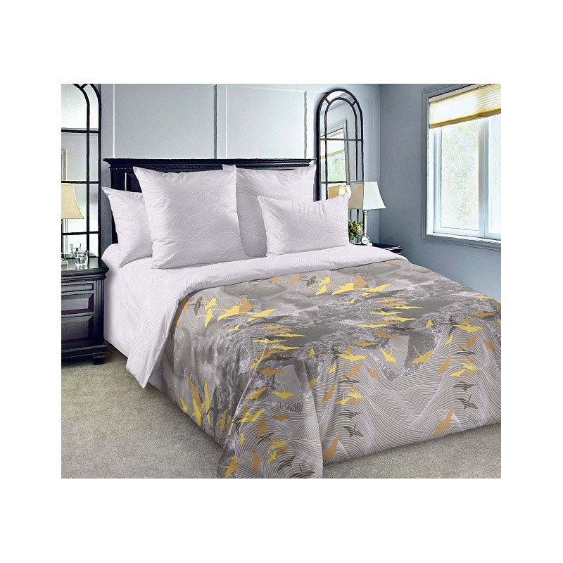 Постельное белье зима-лето 2 сп. с европростыней перкаль Солнечные птицы 2 арт. 3553ПН