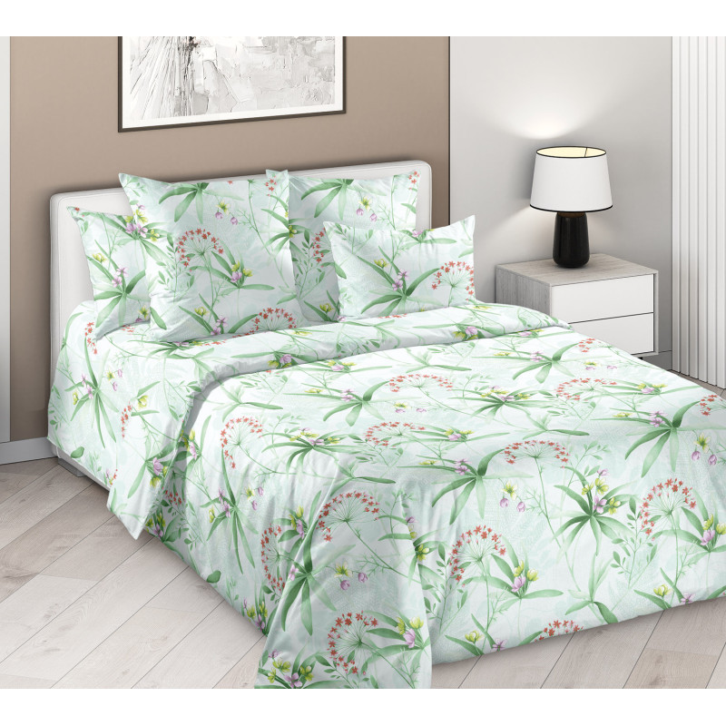 Постельное белье зима-лето 2 сп. с европростыней перкаль Чистый воздух 1 арт. 3553ПН
